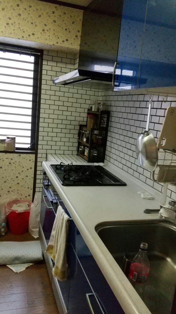 キッチンの壁と床をリフォーム。掃除しやすい素材を使用しました。